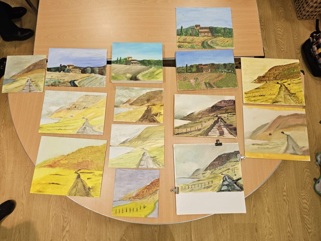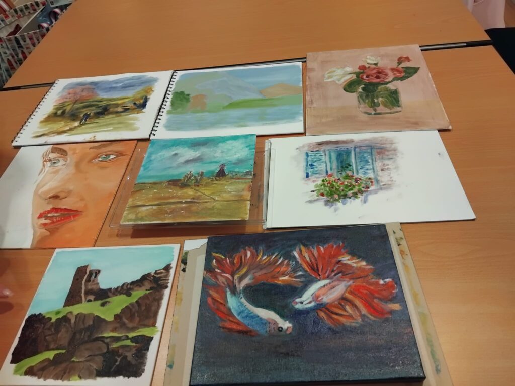 The group has continued its drawing and painting journey by actively exploring and creating artwork using different media and methods. In recent weeks, members have been focused on oil painting using the wet on wet / alla prima method which encourages bold and loose brushwork. It is a challenging way of painting but also very rewarding.